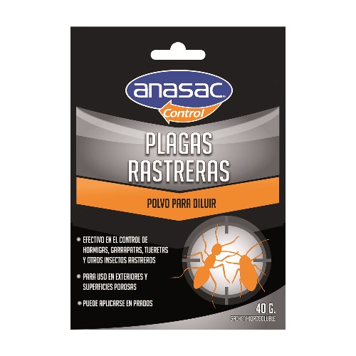 Elimine efectivamente las plagas rastreras con Anasac Control Plagas rastreras. Su polvo diluido es ideal para aplicar en exteriores y superficies porosas, y es altamente efectivo en el control de hormigas, garrapatas, tijeretas y otros insectos. No más plagas en su jardín o césped gracias a Anasac Plagas Rastreras.