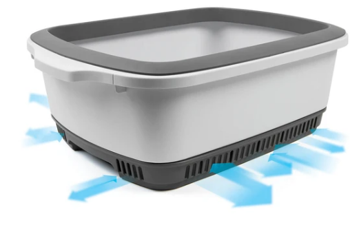 La tecnología de circulación de aire Cateco® seca el ambiente de la arena de forma natural y continua, lo que restringe en gran medida la proliferación de bacterias causantes de olores que son potencialmente dañinas. Las pruebas de laboratorio establecen su tasa de reducción de olor de hasta 86%. (pruebas realizadas en un laboratorio certificado ISO 17025).