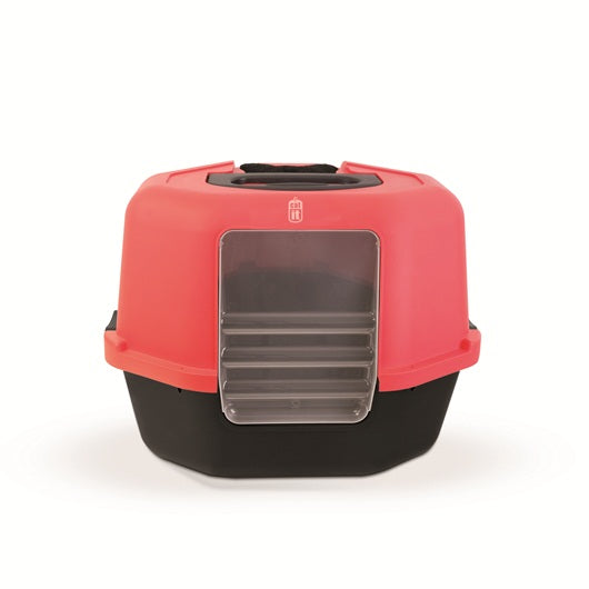 El baño cerrado Catit Corner proporciona privacidad mientras retiene la basura dentro del baño. El capó grande se levanta para facilitar el acceso a la limpieza, mientras que el anclaje de la bolsa incorporada ayuda a mantener la bolsa abierta para recoger. El baño cerrado Catit Corner es un diseño que ahorra espacio y que se adapta conveniente y discretamente a una esquina de su hogar.