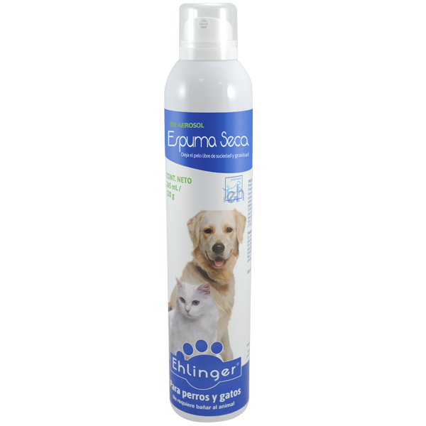La Espuma Seca Ehlinger en aerosol es un producto diseñado para la limpieza e higiene de perros y gatos de todas las edades sin necesidad de baño. Ideal para épocas frías, animales convalecientes, cachorros o adultos mayores, elimina suciedad y grasa, dejando el pelaje limpio, perfumado y fácil de cepillar. Para usar, agite bien, aplique la espuma sobre el pelo y frote en dirección contraria al crecimiento. Luego, retire la suciedad con una toalla. Puede usarse semanalmente según necesidad. Su fórmula combina agentes limpiadores y acondicionadores para un cuidado efectivo y delicado.