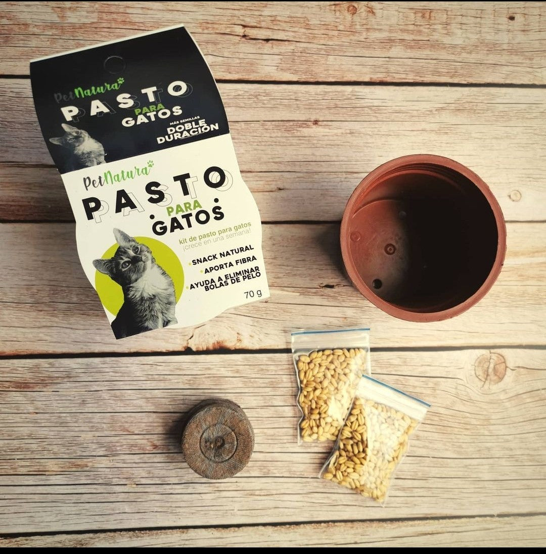 El Kit de Pasto para Gatos de PetNatura es un snack natural que proporciona fibra para ayudar a tus gatos a eliminar bolas de pelo. Con solo una semana de crecimiento, podrás ofrecer a tus gatos un alimento saludable y beneficioso para su salud. ¡Descubre la calidad de PetNatura para tu mascota!