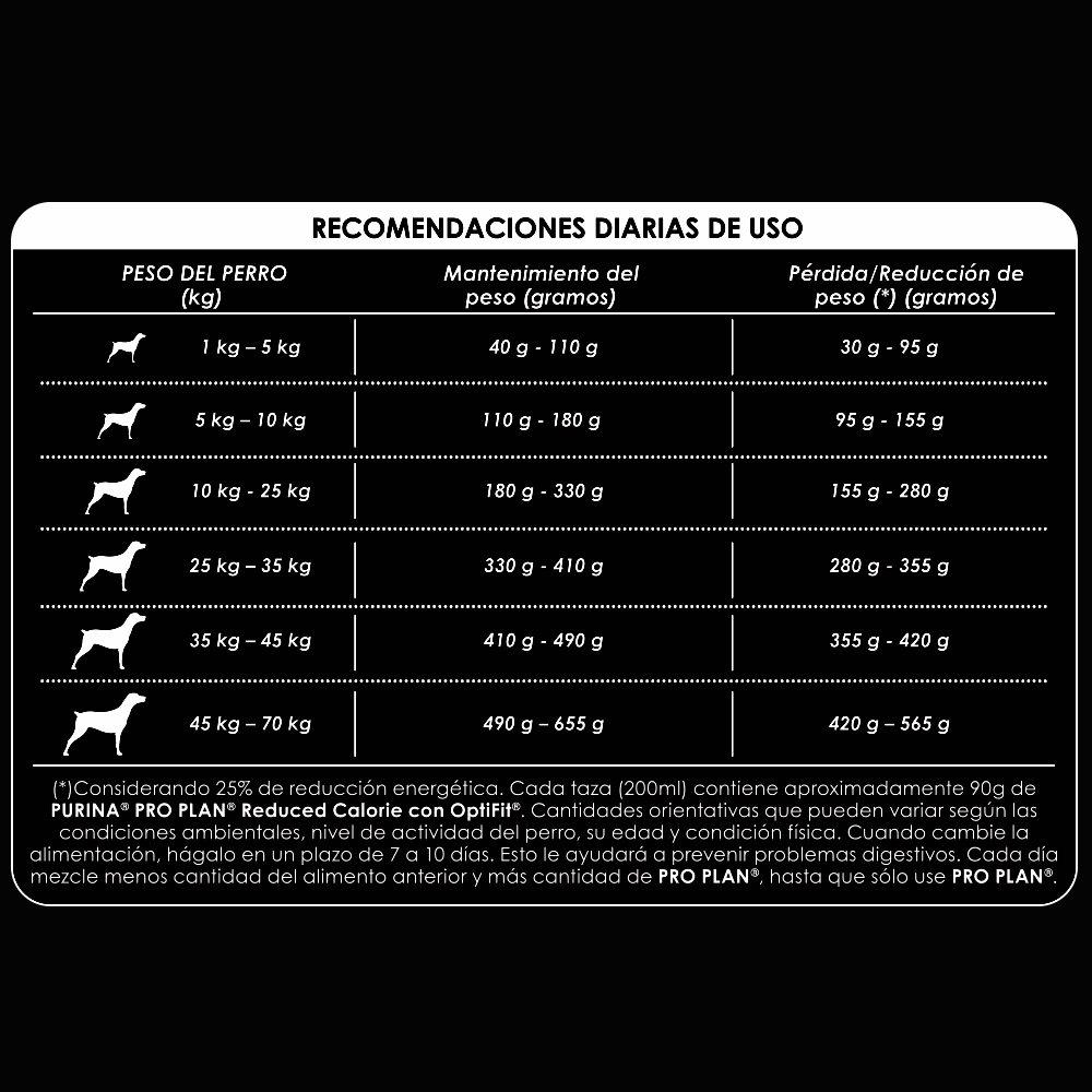 Un peso corporal saludable y una condición corporal magra son de vital importancia para mejorar la salud y aumentar la longevidad de tu perro. PRO PLAN® Reduced Calorie con OptiFit® proporciona nutrición con tecnología de vanguardia para el manejo de un peso saludable.